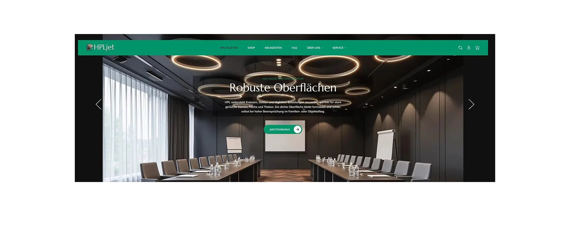 Kernfunktion ist die detaillierte Präsentation von HPL-Platten mit technischen Eigenschaften (Kratzfestigkeit, Wasserbeständigkeit, Hitzeresistenz bis 180°C) und Anwendungsbereichen für Küche, Bad und Outdoor. Das Sortiment umfasst verschiedene Stärken (0,8 mm Schichtstoff bis 12 mm Kompakt-HPL), Dekore (Holz-, Steinoptiken, Unis) und Oberflächenfinishes (matt, glänzend, Anti-Fingerprint). Ein Maß-Konfigurator ermöglicht millimetergenaue Zuschnitte inklusive Kantenbearbeitung, Ausschnitten und Bohrungen nach hochgeladener Zeichnung. Zusätzliche Features: umfangreicher FAQ-Bereich zu Produkteigenschaften, Pflegehinweisen und Umweltaspekten, Social Proof durch Kundenstimmen aus der Praxis sowie Blog für Inspiration und Anwendungstipps.